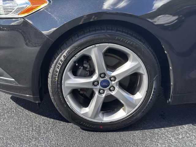 <p> IIHS Top Safety Pick+. Only 51 511 Miles! Delivers 34 Highway MPG and 22 City MPG! This Ford Fusion delivers a Regular Unleaded I-4 2.5 L/152 engine powering it's smooth transmission. Wheels: 17 Aluminum Wheels w/Painted Accents Trunk Rear Cargo Access. <p><strong>This Ford Fusion Comes Equipped with These Options </strong><br /> Trip Computer Transmission: 6 Speed Automatic w/SelectShift Transmission w/SelectShift Sequential Shift Control Tires: P235/50R17 BSW All Season SYNC Communications & Entertainment System -inc: MyFord 911 Assist VHR SYNC Services Bluetooth steering wheel controls USB port and auxiliary input jack Strut Front Suspension w/Coil Springs Steel Spare Wheel Speed Sensitive Variable Intermittent Wipers Single Stainless Steel Exhaust w/Chrome Tailpipe Finisher Side Impact Beams. </p> <p><strong> The Votes are Counted </strong><br /> IIHS Top Safety Pick+ KBB.com 10 Best Hybrid Cars Under $30 000 KBB.com 10 Best Sedans Under $25 000 KBB.com Brand Image Awards. </p> <p><strong> Expert Reviews!</strong><br /> As reported by KBB.com: If youre looking for a sporty sedan a luxurious touring car a fuel-efficient family car or just something to impress the neighbors youll find it all in the 2014 Ford Fusion. </p>