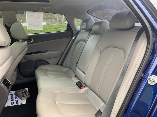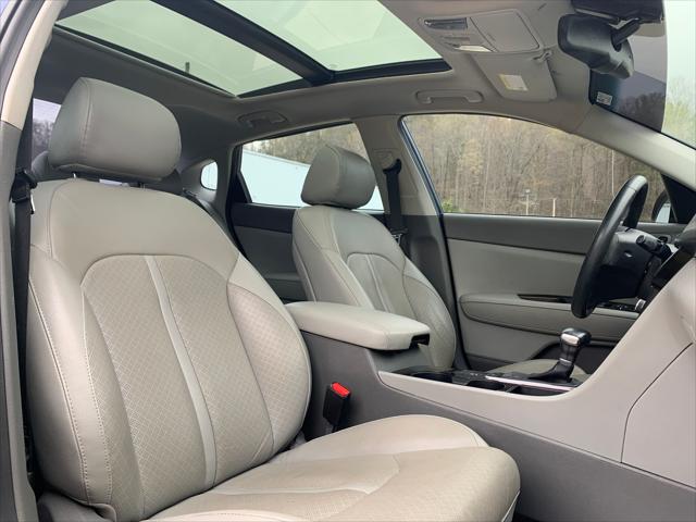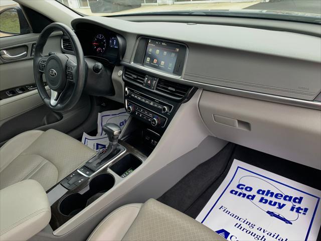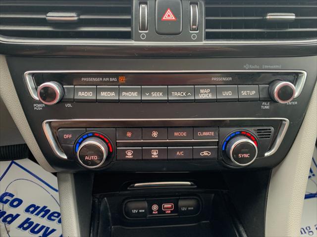 This Kia Optima comes equipped with alloy wheels all season tires acoustic laminated glass metallic grille color leather interior a panoramic moonroof and so much more! Come in for a test drive today!