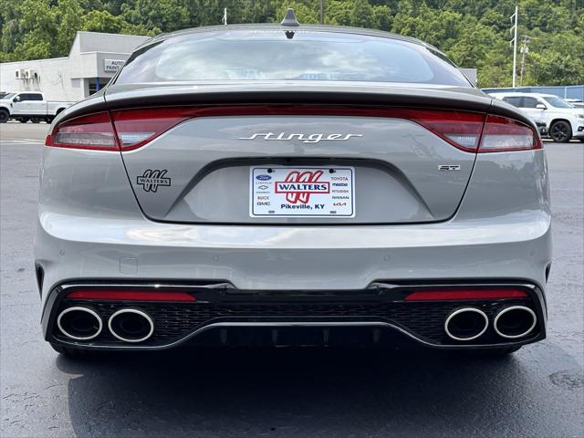 Call today for availability and to schedule a test drive! <p> Boasts 24 Highway MPG and 17 City MPG! This Kia Stinger delivers a Twin Turbo Premium Unleaded V-6 3.3 L/204 engine powering this Automatic transmission. CERAMIC SILVER BLACK SUEDE SEAT TRIM -inc: suede seat insert suede bolster red seat piping red stitching and red seat belt webbing BLACK NAPPA LEATHER SEAT TRIM -inc: premium chain stitch pattern. <p><strong>This Kia Stinger Comes Equipped with These Options </strong><br /> Wheels: 8.0J x 19 Front/8.5J x 19 Rear Spire Alloy Wheels w/Machined w/Painted Accents Accents Voice Activated Dual Zone Front Automatic Air Conditioning Valet Function Trunk/Hatch Auto-Latch Trip Computer Transmission: Electronically Controlled 8-Spd Auto -inc: shift-by-wire drive mode select and paddle shifters Tracker System Tires: P225/40R19 Fr & P255/35R19 Rr All-Season Tire Specific Low Tire Pressure Warning. </p> <p><strong> Stop By Today </strong><br> For a must-own Kia Stinger come see us at Bruce Walters Ford Lincoln Kia 302 South Mayo Trail Pikeville KY 41501. Just minutes away!</p>