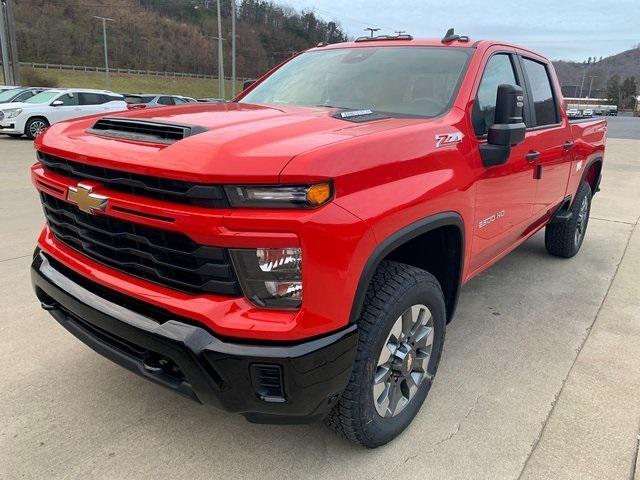 We are open and ready to serve you! Shop safely and conveniently from the comfort of your home. Contact us today to schedule an appointment!<br><br>Local home delivery also available!<br><br>Red Hot 2024 Chevrolet Silverado 2500HD Custom 4WD 10-Speed Automatic Duramax 6.6L V8 Turbodiesel Local Home Delivery Available! Silverado 2500HD Custom Duramax 6.6L V8 Turbodiesel 10-Speed Automatic 4WD Red Hot Black Cloth 10-Way Power Driver Seat Adjuster w/Lumbar 120-Volt Bed Mounted Power Outlet 120-Volt Interior Power Outlet 170 Amp Alternator 2-Speed Electronic Shift Transfer Case 3.5"" Diagonal Monochromatic Display DIC AM/FM radio: SiriusXM with 360L Auto High-beam Headlights Auto-Dimming Inside Rear-View Mirror Black Chevytec Spray-On Bedliner Black Mirror Caps Black Name Plates (LPO) Black Tailgate Lettering (LPO) Bluetooth For Phone Chevrolet Connected Access Capable Color-Keyed Carpeting Floor Covering Compass Custom Convenience Package Custom Value Package CX Safety Package Dark Essentials Package (LPO) Deep-Tinted Glass Dual Rear USB Ports (Charge Only) Electric Rear-Window Defogger Electronic Cruise Control w/Set & Resume Speed EZ Lift Power Lock & Release Tailgate Front Black Bowtie Emblem (LPO) Front Rubberized Vinyl Floor Mats Fully automatic headlights Gooseneck/5th Wheel Package (DISC) Gooseneck/5th Wheel Prep Package HD Rear Vision Camera Heated & Auto-Dimming Vertical Trailering Mirrors Heated Vertical Trailering Mirrors Hill Descent Control Integrated Trailer Brake Controller Lane Change Alert w/Side Blind Zone Alert LED Cargo Area Lighting Locking Tailgate Manual Tailgate Function w/No EZ Lift Manual Tilt-Wheel Steering Column Max Trailering Package Off-Road Suspension OnStar & Chevrolet Connected Services Capable Power Door Locks Power Front Windows w/Driver Express Up/Down Power Front Windows w/Passenger Express Down Power Rear Windows w/Express Down Preferred Equipment Group 1CX Push Button Start Rear 60/40 Folding Bench Seat (Folds Up) Rear Cross Traffic Alert Rear Park Assist Rear Rubberized Vinyl Floor Mats Remote Keyless Entry Remote Vehicle Starter System SiriusXM w/360L Standard Tailgate Suspension Package Unauthorized Entry Theft-Deterrent System Wi-Fi Hotspot Capable Wireless Phone Projection Z71 Off-Road Package.<br><br>Recent Arrival!<br><br><br>Proudly serving Pikeville Prestonsburg Paintsville Williamson Jenkins Whitesburg & Surrounding Communities Since 1960!<br><br>.