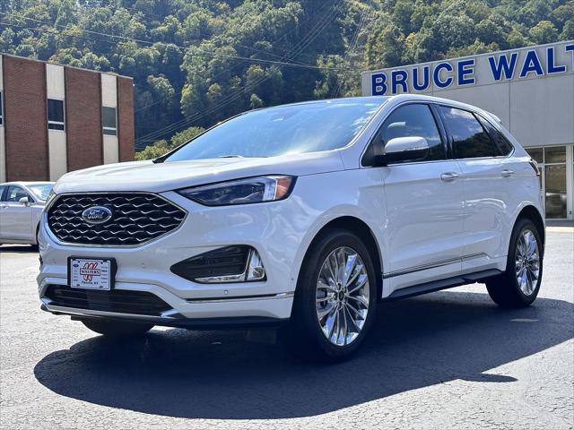 <p> Boasts 28 Highway MPG and 21 City MPG! This Ford Edge delivers a Intercooled Turbo Premium Unleaded I-4 2.0 L/122 engine powering this Automatic transmission. TRANSMISSION: 8-SPEED AUTOMATIC W/SELECTSHIFT -inc: Active Transmission Warm-Up (STD) TITANIUM ELITE PACKAGE -inc: painted body color front bumper w/bright chrome inserts painted body color rear bumper and body color lower side cladding w/bright chrome inserts Wheels: 20 Polished Aluminum Tires: 245/50R20 AS 3D Diamond Instrument Panel Appliques Bright Chrome Accents & Surround Upper Grille 3D Diamond Front Console Surface Area Enhanced Active Park Assist parallel park park out assist reverse perpendicular parking forward and reverse and side sensing systems STAR WHITE METALLIC TRI-COAT. <p><strong> This Ford Edge Features the Following Options </strong><br /> MINI SPARE WHEEL -inc: Replaces tire inflator and sealant kit Mini Spare Tire FRONT LICENSE PLATE BRACKET EQUIPMENT GROUP 301A -inc: Power Tilt/Telescoping Steering Column w/Memory Evasive Steering Assist Adaptive Cruise Control w/Stop & Go Adaptive LED Headlamps LED amber light blade turn signals Front 180-Degree Camera w/Split View Heated Rear Seats Lane Centering Auto-Dimming Driver's Sideview Mirror Connected Navigation 1 year of connectivity pinch-to-zoom capability live traffic predictive destinations and route guidance Note: Navigation service requires SYNC4 and FordPass Connect (optional on select vehicles) complimentary connect service and the FordPass app (see FordPass terms for details) Customer receives a complimentary 1-year trial of navigation services when an eligible vehicle is added to members FordPass account Trial period begins w/new vehicle warranty start date At the end of the complimentary period access to connected navigation services will be discontinued Connected service and features depend on compatible AT&T network availability Evolving tech ENGINE: TWIN-SCROLL 2.0L ECOBOOST -inc: auto start-stop technology (STD) Wheels: 19 Luster Nickel-Painted Aluminum Trunk/Hatch Auto-Latch Trip Computer Transmission: 8-Speed Automatic w/SelectShift -inc: Active Transmission Warm-Up Tires: P245/55R19 AS BSW Tire Specific Low Tire Pressure Warning. </p> <p><strong> Stop By Today </strong><br> Test drive this must-see must-drive must-own beauty today at Bruce Walters Ford Lincoln Kia 302 South Mayo Trail Pikeville KY 41501.</p>
