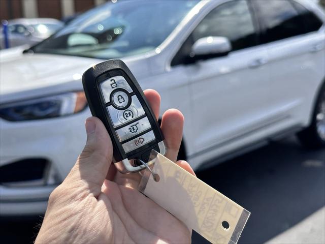<p> Boasts 28 Highway MPG and 21 City MPG! This Ford Edge delivers a Intercooled Turbo Premium Unleaded I-4 2.0 L/122 engine powering this Automatic transmission. TRANSMISSION: 8-SPEED AUTOMATIC W/SELECTSHIFT -inc: Active Transmission Warm-Up (STD) TITANIUM ELITE PACKAGE -inc: painted body color front bumper w/bright chrome inserts painted body color rear bumper and body color lower side cladding w/bright chrome inserts Wheels: 20 Polished Aluminum Tires: 245/50R20 AS 3D Diamond...